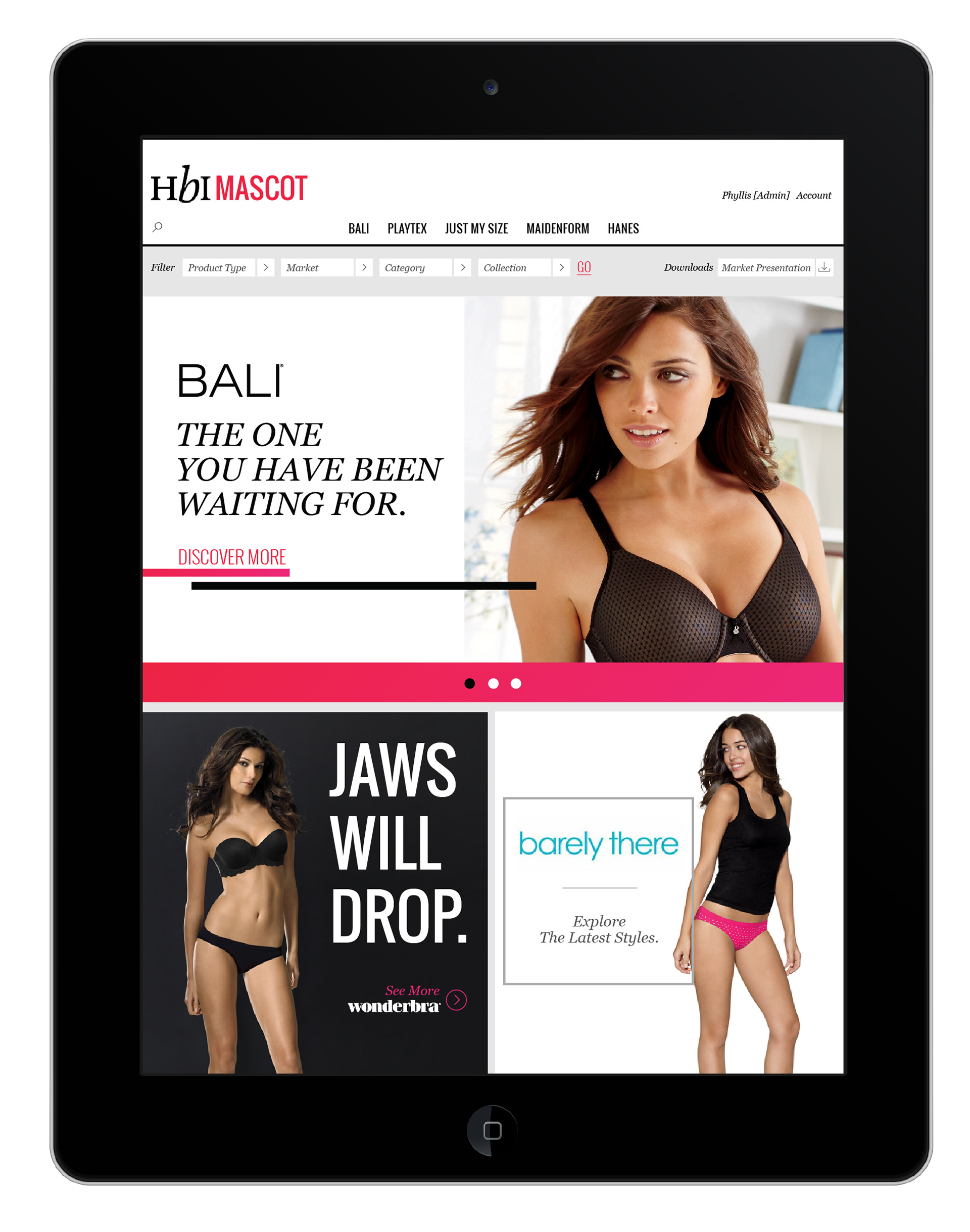 Website concepts for the HBI Mascot, a Hanes sub-brand